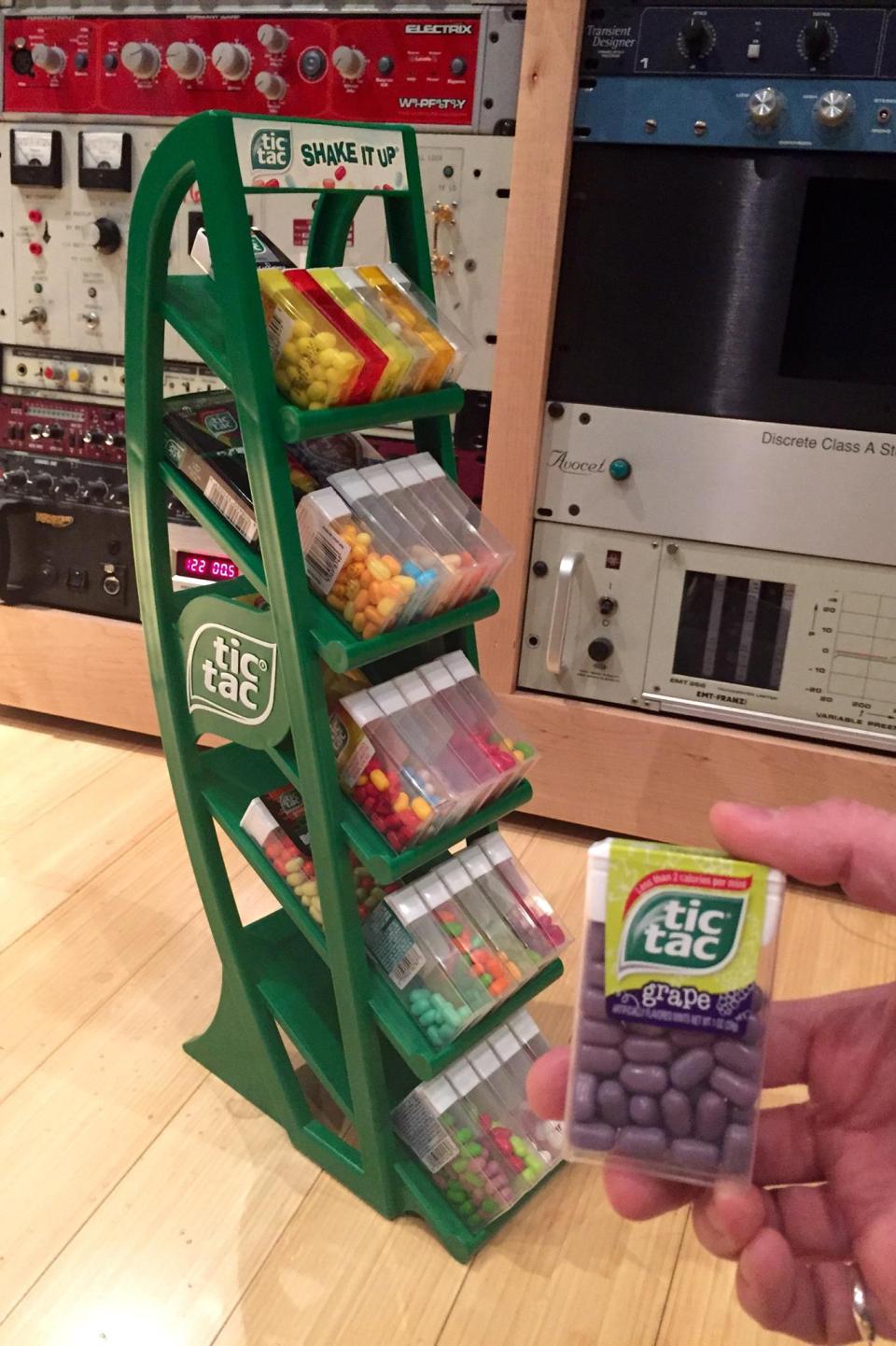 Latest flavor of Tic Tac added to the collection at VOCOMOTION Studios: Grape!! These are pretty awesome, great grape/lychee taste, and even has dried grape juice and lychee in it. We’re up to 40 types of Tic Tacs now and yes they are now mostly housed on a lovely retail display stand.