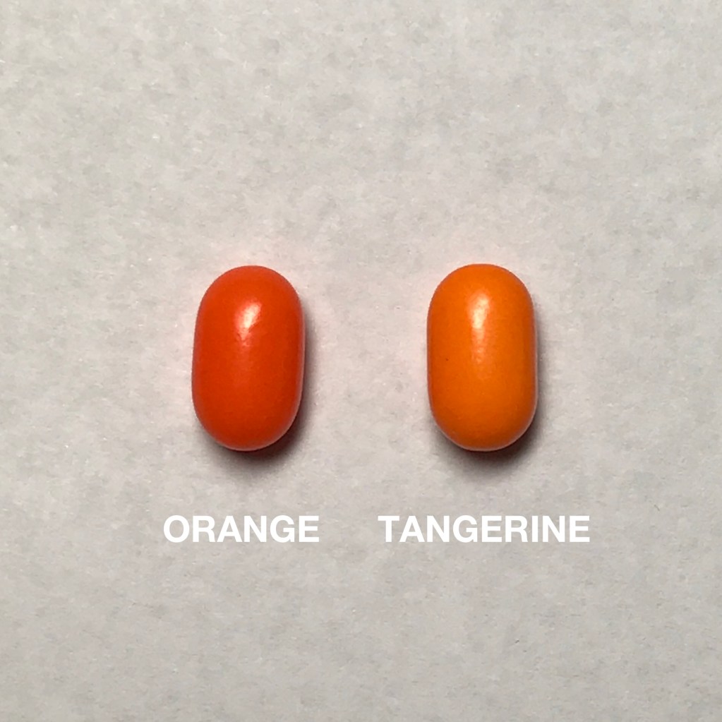 I did a side-by-side comparison of the standard orange flavor and this new tangerine flavor because I was curious if this new flavor really was orange or if there actually was a difference. The orange uses artificial flavors but tangerine uses real “dried tangerine juice” so that’s pretty nice. The flavor of tangerine here is much less assertive than the orange with only a light aftertaste. Tangerine includes a hint of the bitter pink grapefruit Tic Tac flavor (one of my favorites) on the finish. Color-wise, orange looks much more vibrant next to the tangerine.