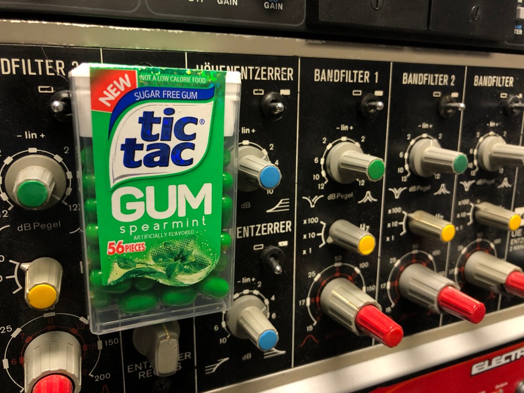 Heyhey, it’s #TicTacTuesday! The 102nd variety added to the Tic Tac collection at VOCOMOTION Studios: GUM (Spearmint). The gum has arrived in the US! Previously, you could only get the gum in Europe. I guess that’s cool if you like gum and are a fan of the FIVE KINDS OF SUGAR in this stuff. Personally, I do not like artificial/natural non-sugar sweeteners and this stuff is loaded with them: xylitol, isomalt, sorbitol, acesulfame potassium (Ace-K), and Sucralose. I don’t mind xylitol and other sugar alcohols, but seriously Ace-K AND Sucralose too??
