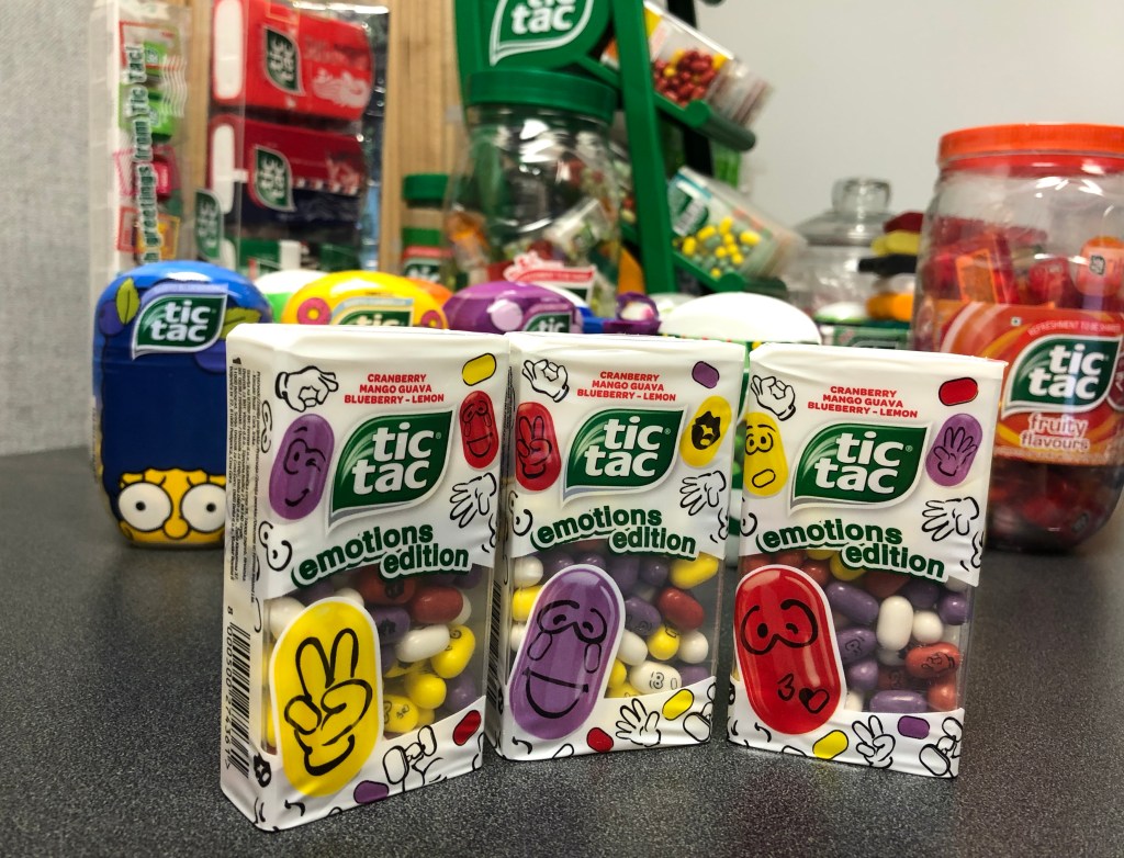Heyhey, it’s #TicTacTuesday! The 105th variety added to the Tic Tac collection at VOCOMOTION Studios: Emotions Edition. These come all the way from Slovenia. They feature cool little “emotions” (and some hands?) printed on each candy.